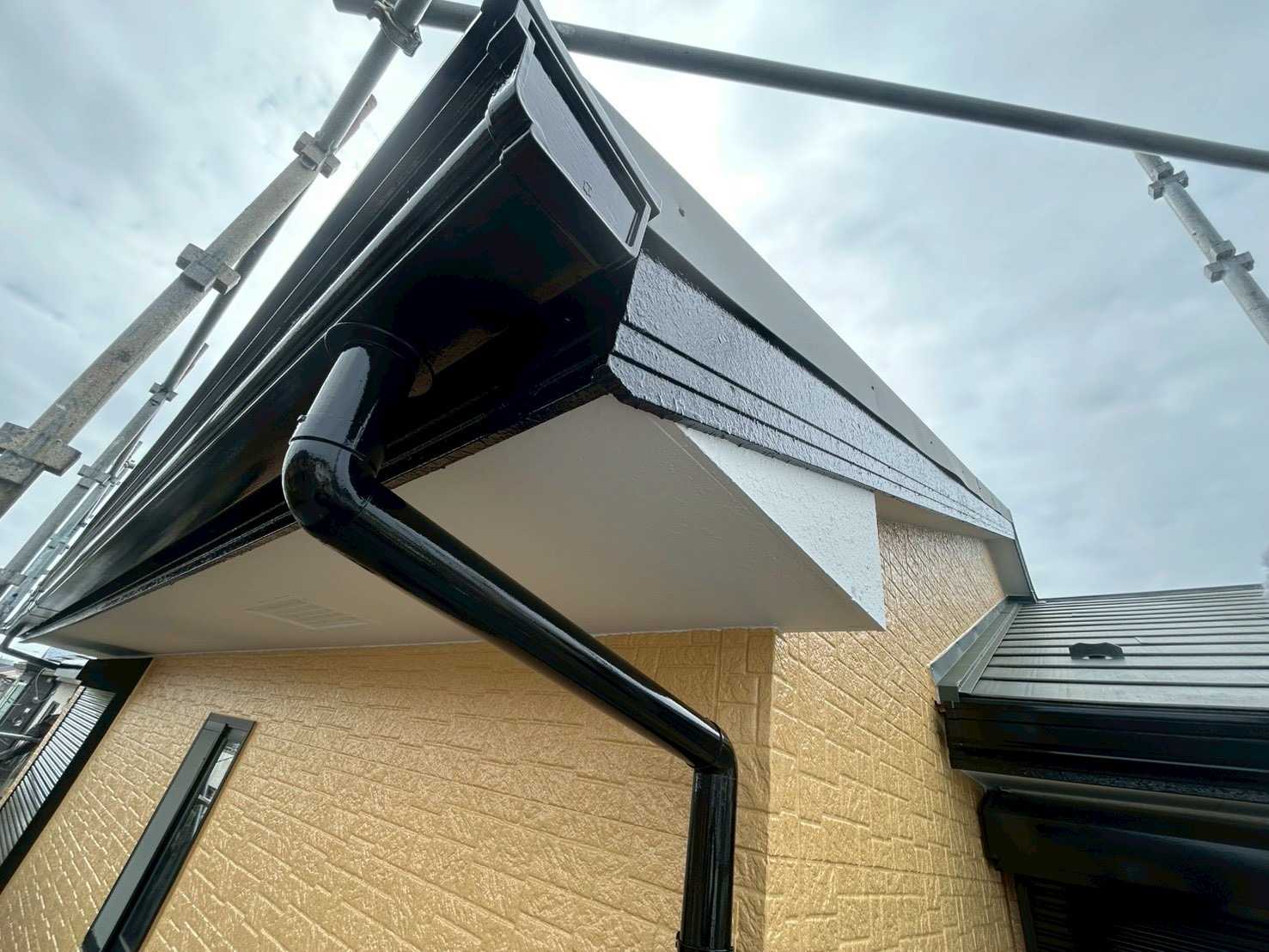 付帯部は1液ダイナミックトップマイルドの黒を使用しました。1液ダイナミックプライマーの黒を下塗りに使用して3回塗装しています。