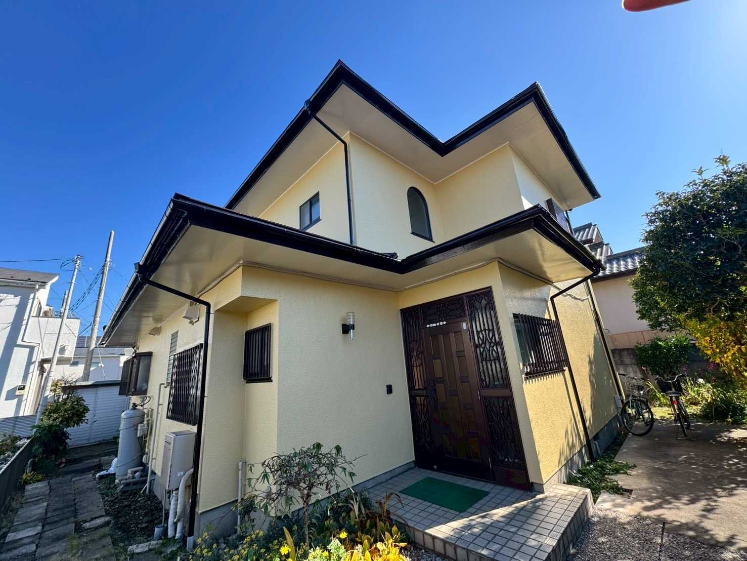 屋根と外壁は色褪せが進み、粉が吹いていました。