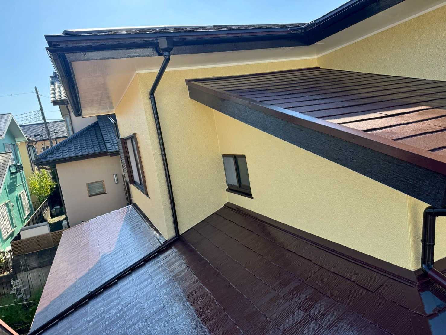 ①1階の屋根は ラジカル制御塗料のダイナミックルーフ(チョコレート)