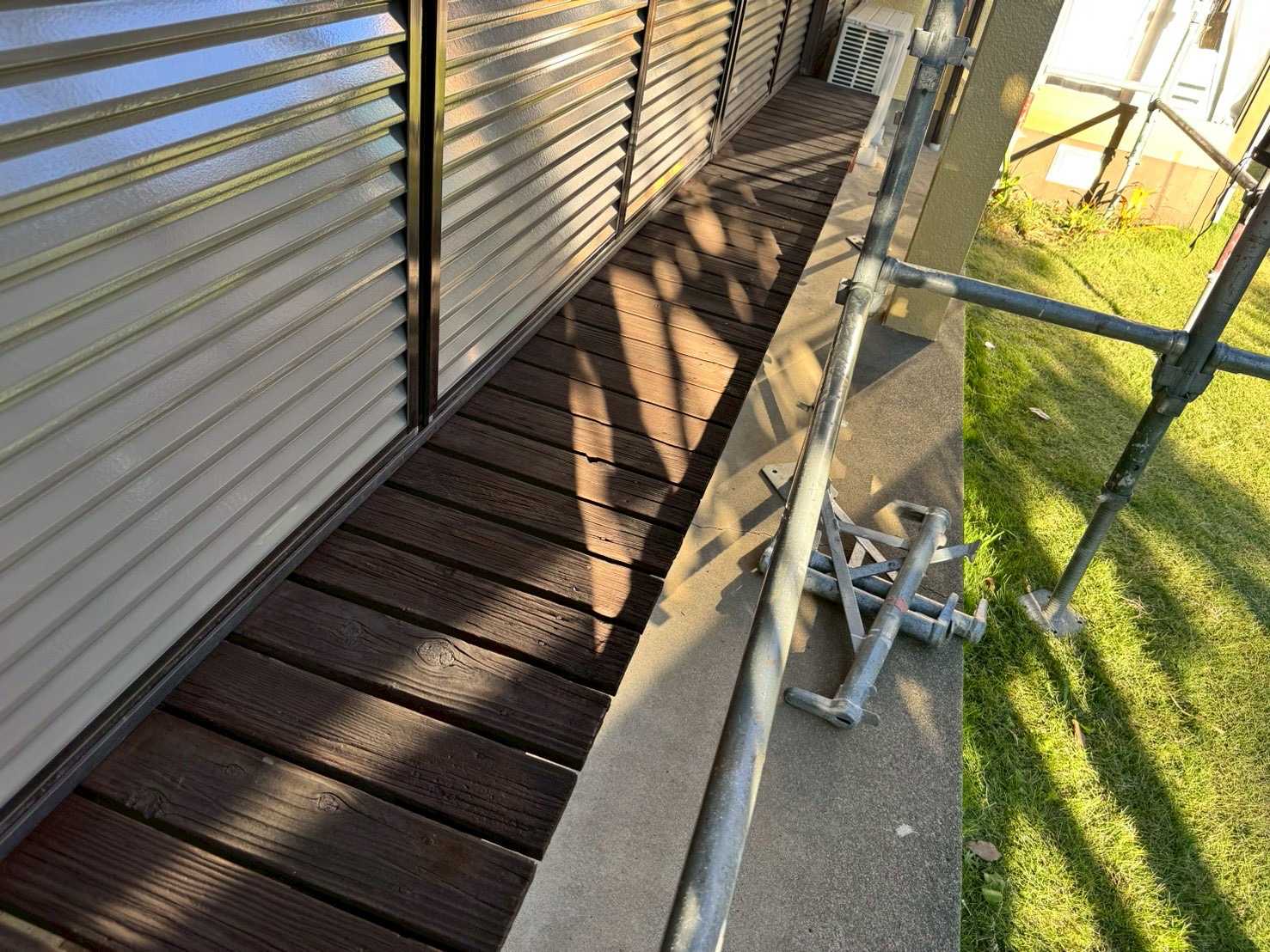 木部の破風や軒天は膨れや剥がれ、鉄部は白錆と塗膜の剥離がありました。