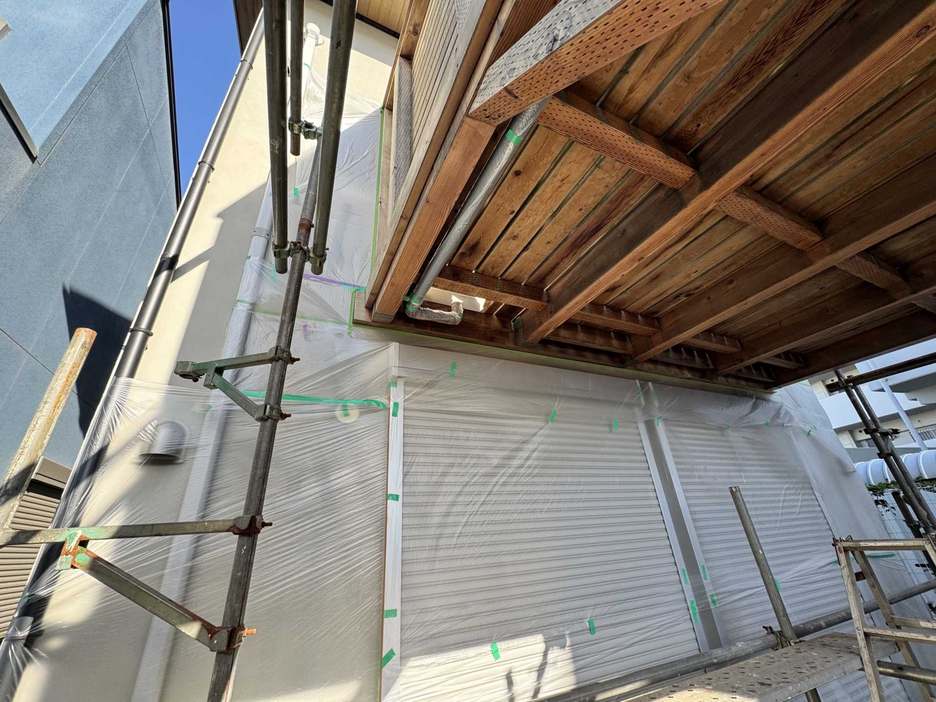 外壁を汚さないよう養生をしっかりと行いました。