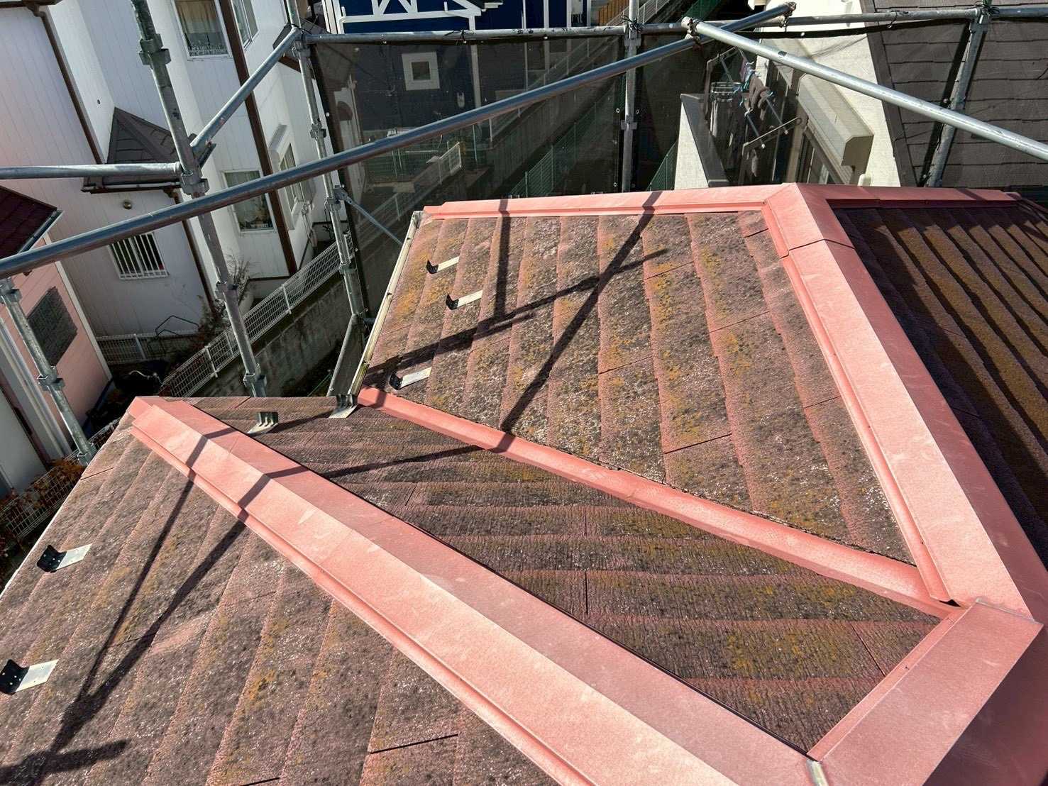 今回の屋根はノンアスベスト初期の物で既にひび割れが多く、